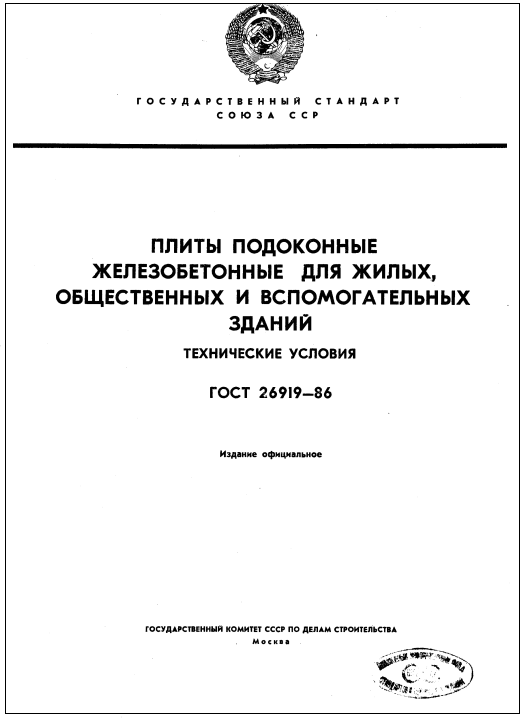 ГОСТ 26919-86. Плиты подоконные железобетонные для жилых, общественных и вспомогательных зданий
