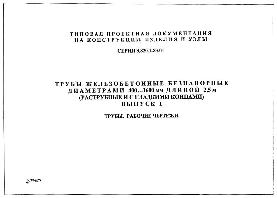 Серия 3.820.1-83.01. Трубы железобетонные безнапорные диаметром 400...1600 мм длиной 2.5 м (раструбные и с гладкими концами)