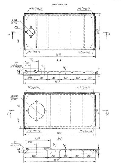 ПВ 10-4 AIIIвп Плиты с проемом в полке для пропуска вентиляционной шахты или воздуховода крышного вентилятора.