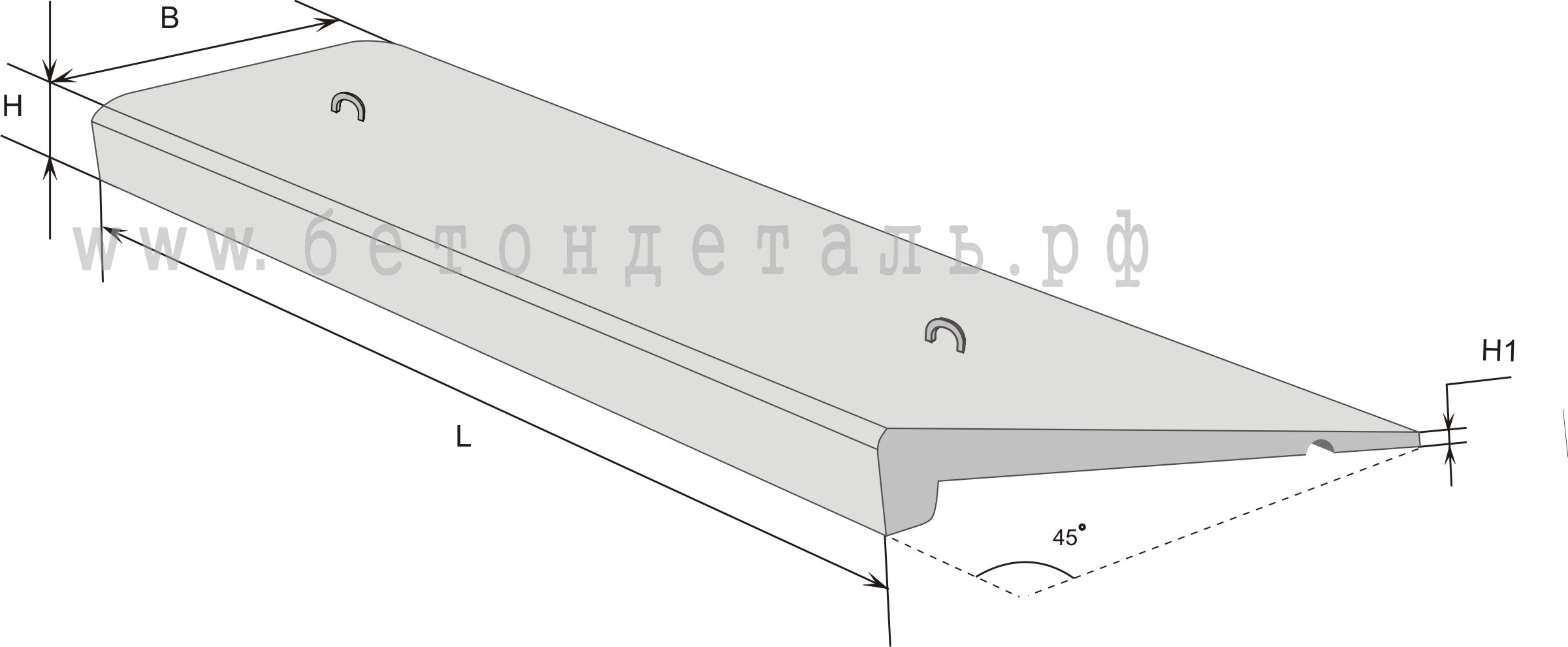 Рассмотрим пример плиты парапетной ПП 20-6 УВЛ, где: