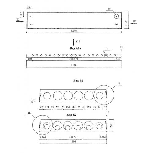 Плиты длиной 6580 мм и шириной 1190 мм с напрягаемой арматурой из стали классов A-IIIв, A-IV, Ат-V , из тяжелого бетона. Метод натяжения - электротермический.