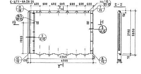 Рассчитать стоимостьПанели стеновые цокольные СЦТ1-44.28.25 (Серия 1.117-12с).
