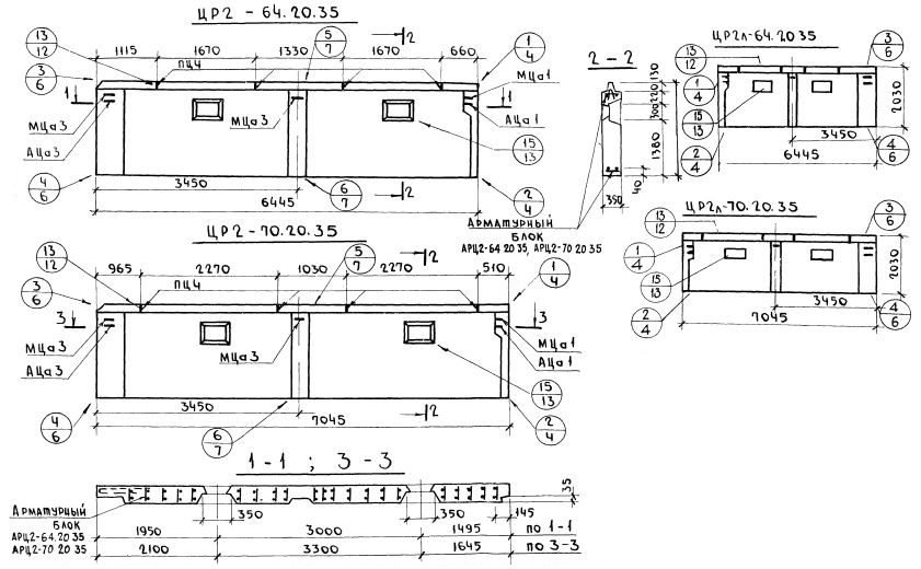 Серия 1.117-13    Панели наружных цокольных стен групп ЦР2; ЦТ1; ЦТ2  толщиной 300, 350, 400 мм.