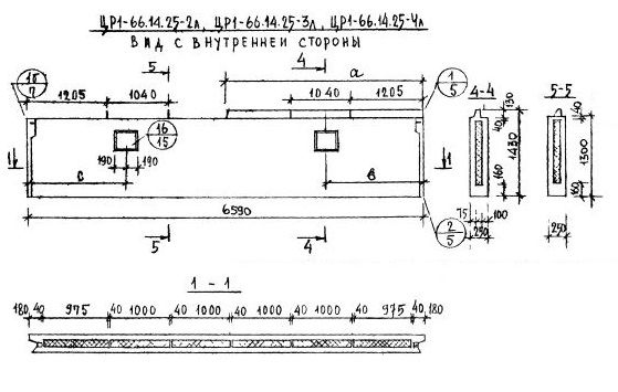 Серия 1.117-9    Панели групп ЦР1, ЦР2, ЦР4, ЦР5  толщиной 250 мм.