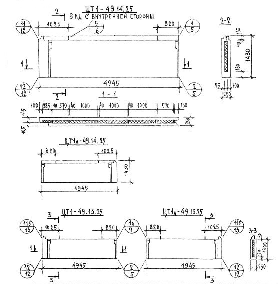 Серия 1.117-9    Панели групп ЦТ1 и ЦТ2  толщиной 250 мм.
