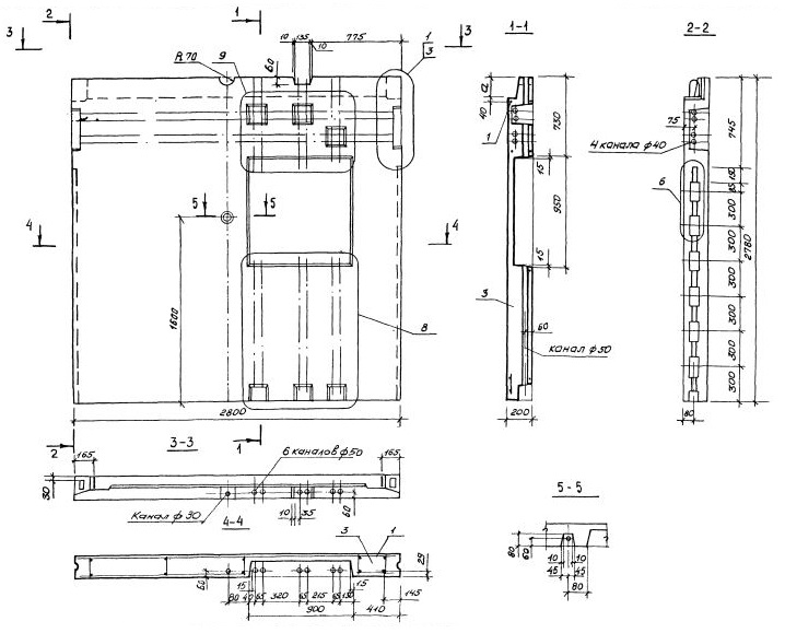 Третья группа включает индексы, обозначающие: первая цифра - вид боковой грани, определяющей примыкание электротехнических панелей к смежным конструктивным элементам (1-вертикальные боковые грани без выступов, 2 - вертикальные грани по всей высоте имеют выступ); две последующие цифры после точки - определяют толщину плиты перекрытия (в сантиметрах), для опирания которой имеется подрезка на верхней грани электротехнической панели; буквенным индексом обозначено положение ниши для электрощита по отношению к длине электротехнической панели или простенка (П-ниша справа, Л- ниша слева), при расположении ниши по центру буквенный индекс не проставляется.