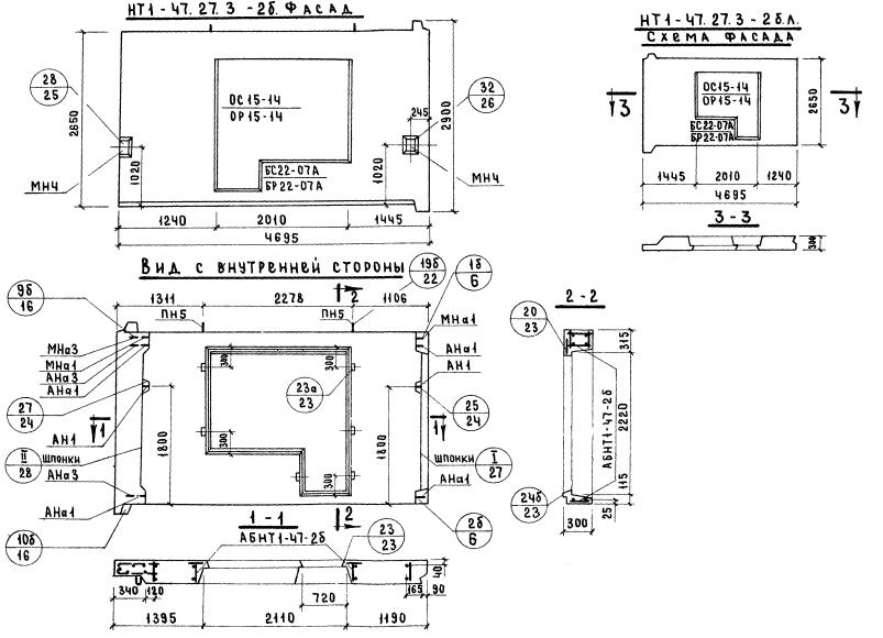 НТ1-47.27.3-2бл   Наружная стеновая панель торцевая по Серии 1.132-1.