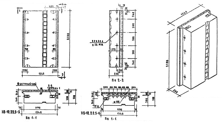 Стеновые легкобетонные блоки толщиной 50 см по Серии 1.133-1.