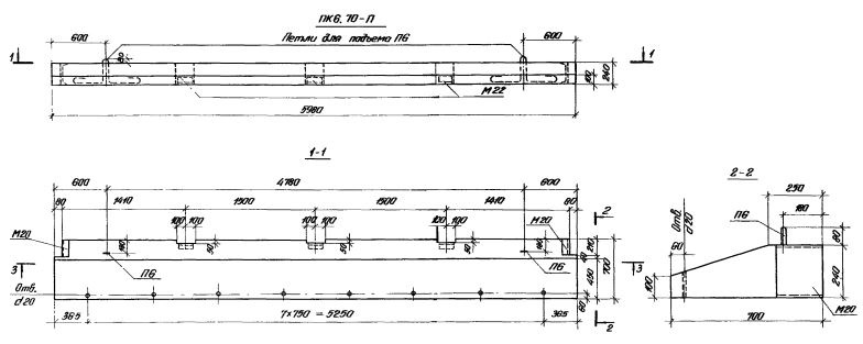 ПК 6.70-п  Панель карнизная при панелях толщиной 250 мм.
