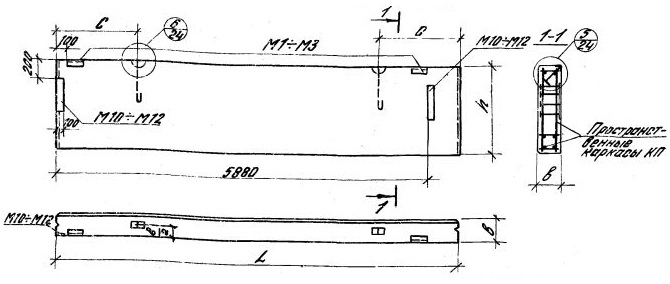 ПС 650.18.25-я-71    Парапетная панель для углов и температурных швов.